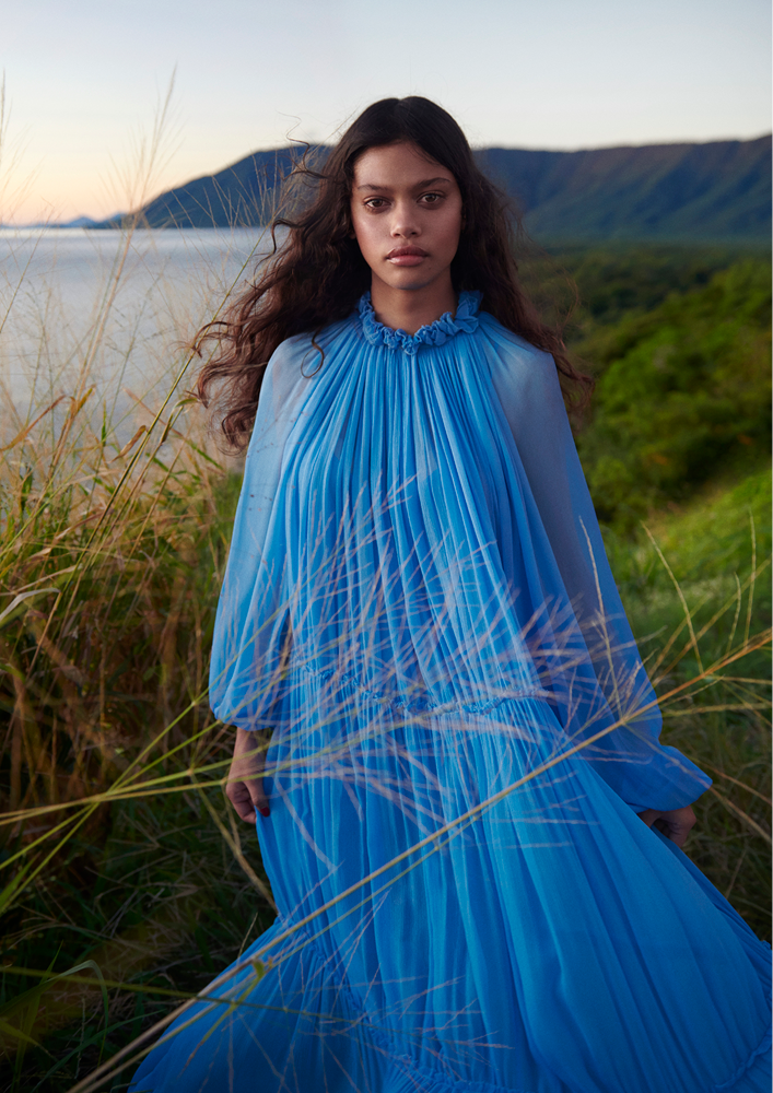 "I wanted the hair to almost look like it was a result of the environment we were in, nothing highly polished or too overdone. The beauty of where we were was how irregular the textures were, and I wanted that to come through in the hair. I used a lot of Miracle Hair Treatment, Sea Salt Texture Spray and Dry Finish Wax Spray to amplify natural movement and add definition’